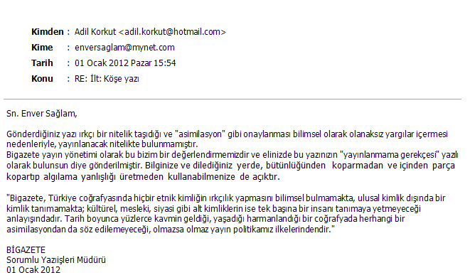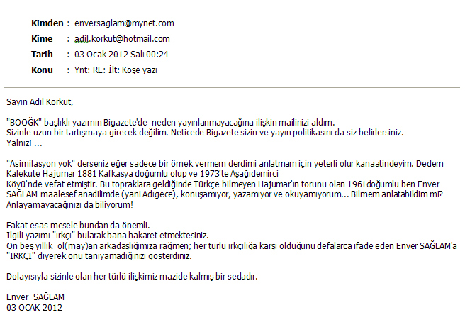 "Enver Sağlam'ın Bigazate'de yayınlanmayan yazısı"