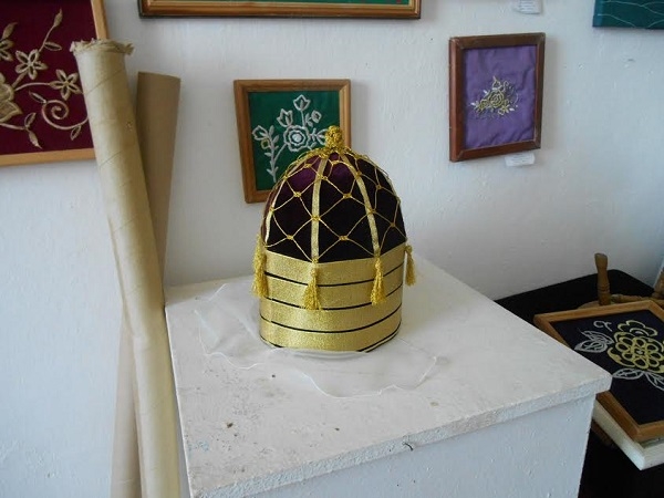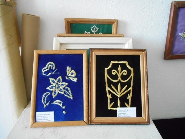 El sanatları bölümündekilere eski Adığelerin altın iplikle yaptıkları işlemeler öğretliyor.