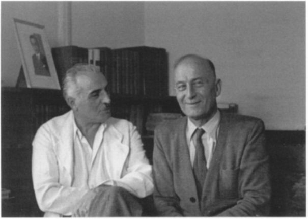 Haydar Bammat ve Alihan Kantemir, arkalarında Shigeki Usui’nin Fotoğrafı, İsviçre, Ağustos 1945. Rangoon (Yangon), Burma’da 1945 yılında öldürülen Usui’nin son derece hoş hatırasını muhafaza ediyorlar