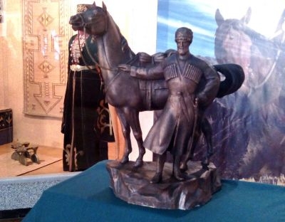Organizers are now collecting funds for the full-sized statue that will go up in the aul eventually. It will be made of bronze and measure 3.3 meters by 4 meters. The mini-statue exhibited at the museum last week is one of 12 that were cast to mark the 150th anniversary of the end of the Caucasus war earlier this year. The number “12” is also deeply symbolic, Chemso said: it is the number of stars on the Adygean flag and thus shows that Sheretluko is not just a hero of one aul or one republic but of all Circassians.