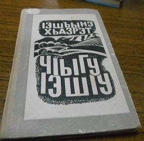 1эшъынэ Хьазрэт итхылъхэр урысыбзэк1и Москва къыщыдигъэк1ыгъэх."Сердечный перекресток"-1964,"Деревья на встру"-1966,"Всадник переходит бурную реку"-1966,"Водяной орех"-1970,"Дар доброму вестнику"-1973,"Сочинители песен"-1976,"Эту песню поют мужчины"-1990.