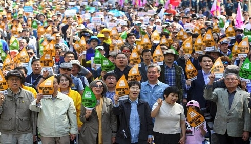 Güney Kore'nin başkenti Seul'de asgari ücretin artırılması ve işçi haklarının iyileştirilmesi için sendikalar yürüyüş düzenledi.