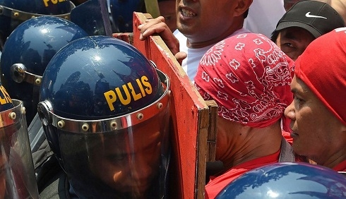 Filipinler'in başkenti Manila'da polis ile işçiler 1 Mayıs kutlamalarında karşı karşıya