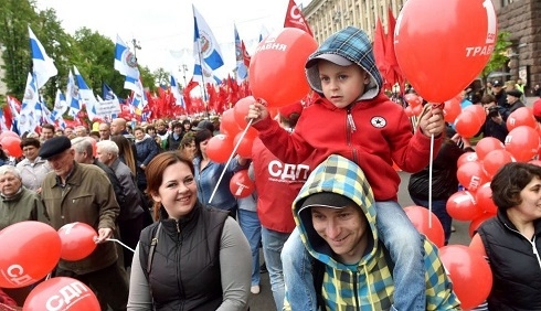 Ukrayna'nın başkenti Kiev'de sol partiler ve sendikalar yürüyüş düzenledi.