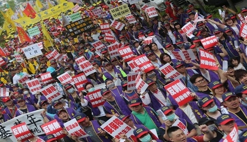 Tayvan'ın başkenti Taipei'de de çalışma koşullarının iyileştirilmesi çağrısı yapılıyor.