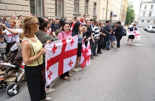 Stokholm'de yaşayan Gürcüler, Tiflis'teki protesto gösterileri için bir dayanışma işareti olarak, İsveç'in başkentinde protesto eylemi gerçekleştirdiler