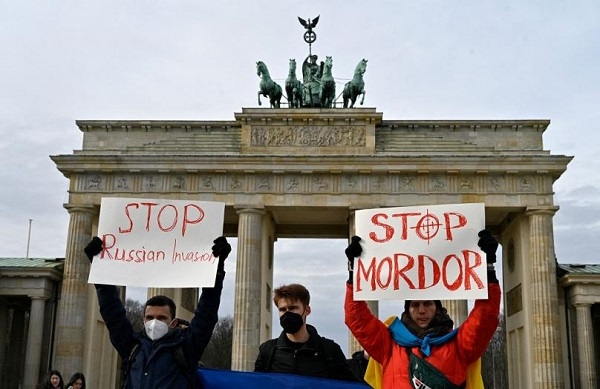 Almanya'nın başkenti Berlin'de yüzlerce kişi sokaklarda yürüyerek işgali protesto etti. Brandenburg Kapısı'nda toplanan göstericiler Ukrayna bayrağı dalgalandırarak "Ukrayna'nın yanındayız" sloganları attı.