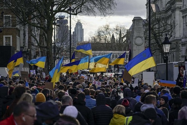 Ukrayna kökenli göstericiler başkent Londra sokaklarında Rusya'yı protesto etti. Başbakanlık ve hükümet binalarının bulunduğu bölgede toplanan eylemciler "Savaşı Durdur" pankartlarıyla tepkilerini dile getirdi.